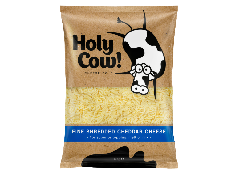 This cheese is ideal for bakery toppings, melt in pies and quiches, and Mexican applications requiring a quick melt profile. Made from fresh Australian milk and finely shredded for easy use straight out of the bag, Holy Cow Fine Shredded Cheese is packed in large 4kg bags for convenience. With a shelf life of 6 months, it is available to order in a cartons of 2 to keep on hand for your menu needs.