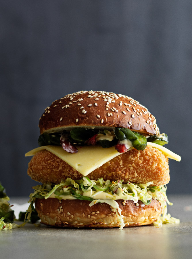With a staggered stack of Anchor Slice-on-Slice Processed Cheese. A must-have in every fast kitchen.