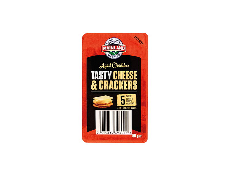 Tasty Cheddar Cheese 62% (Milk, Salt, Cultures, Enzyme [Non-Animal Rennet]), Snack Cracker 38% (Wheat Flour, Vegetable Fats & Oils (Containing Antioxidant [307b (From Soy)]), Sugar, Malt Extract (From Barley), Salt, Raising Agents (450,500).
