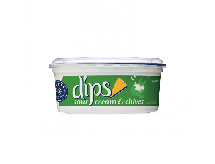 Skim milk, cream, sour cream & chives seasoning (4.3%) (contains flavour enhancers (621, 635), accidity regulators (270, 327, 260)), thickener (1422), gelatine, chives (0.3%), milk solids, emulsifier (339), preservative (202), culture.