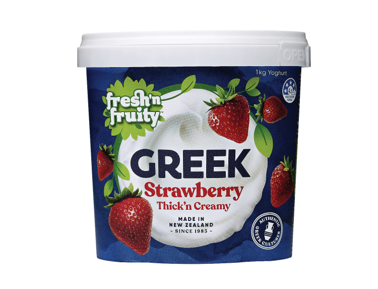 Skim milk, strawberry (6.5%), cream, sugar, milk solids, thickener (1442), flavour, strawberry juice concentrate (0.1%), live cultures (including S. thermophilus DC 29 strain from artisanal Greek yoghurt, L. bulgaricus and L.acidophilus)), acidity regulators (332, 330), preservative (202), natural colour (120).