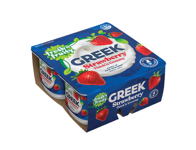 Skim milk, strawberry (6.5%), cream (from milk), sugar, milk solids, thickener (1442), flavour, strawberry juice concentrate (0.1%), live cultures (including S. thermophilus DC 29 strain from artisanal Greek yoghurt, L. bulgaricus and L. acidophilus), acidity regulators (332, 330), preservative (202), natural colour (120).