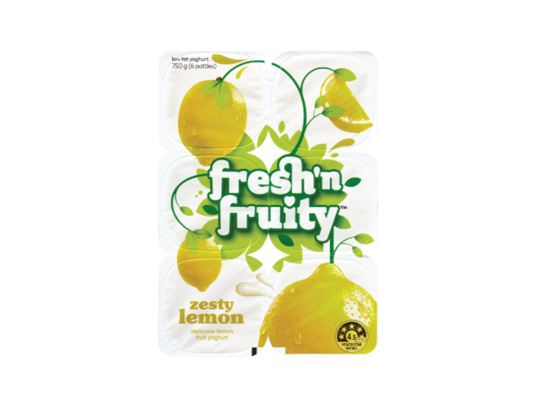 Skim milk, sugar, cream, orange (2.0%), thickener (1442), gelatine, lemon juice concentrate (0.2%), flavour, live cultures (including acidophilus and bifidus), acidity regulator (332), natural colours (160b, 100), preservative (202).