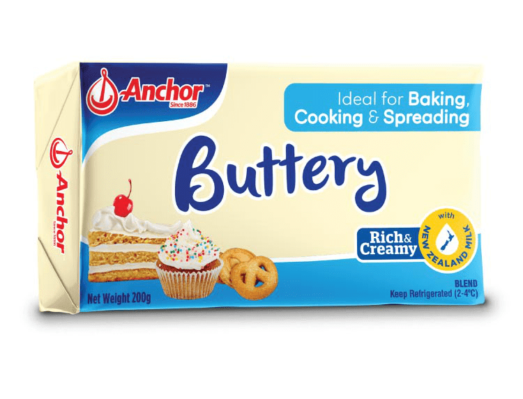 RBD Coconut oil, Process water, RBD Palm oil, Butter fat, Buttermilk powder, Iodized salt, Emulsifiers Distilled mono-glycerides, Polyglycerol polyricinoleate), Nature identical flavor, Preservative (Potassium sorbate), Antioxidant (TBHQ), Acidulant (Citric acid), Natural color (Beta-carotene).