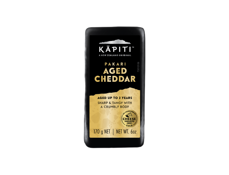 Our Kāpiti Pakari Aged Cheddar is carefully aged for up to 2 years, giving it a firm, brittle body and a sharp and tangy bite. In te reo Māori, Pakari speaks of maturity and strength - qualities shared this cheese.