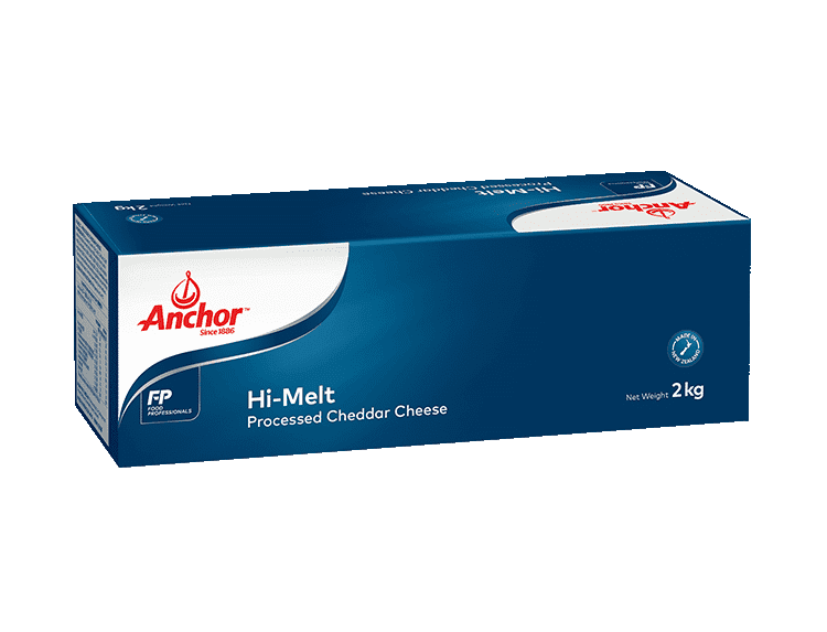 Anchor Hi-Melt Processed Cheese block has a mild to medium cheddar cheese flavour.