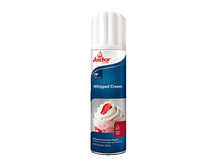 Anchor Food Professionals Whipped Cream is a versatile, cream that comes in a ready-to-use and hygienic canister – ideal as a tasty dairy topping on hot or cold drinks, or a garnish for desserts.